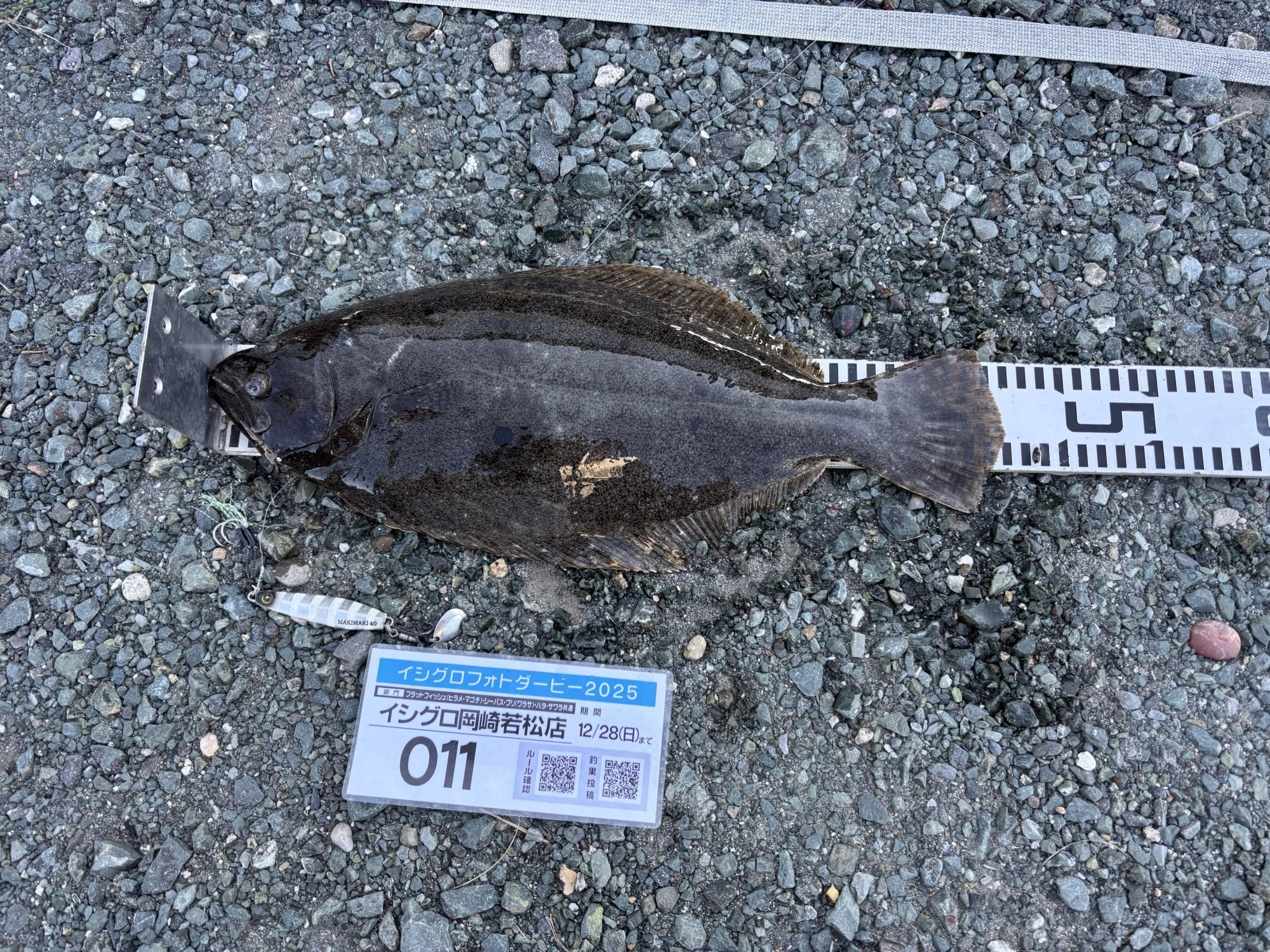 釣行日 2025/11/15 釣行時間 07:00~11:00 釣場 東海 > 静岡中部 > 静岡・清水周辺 ポイント サーフ 釣り方 サーフルアー 釣魚 ヒラメ 釣果 ヒラメ1匹 サイズ ヒラメ47cm