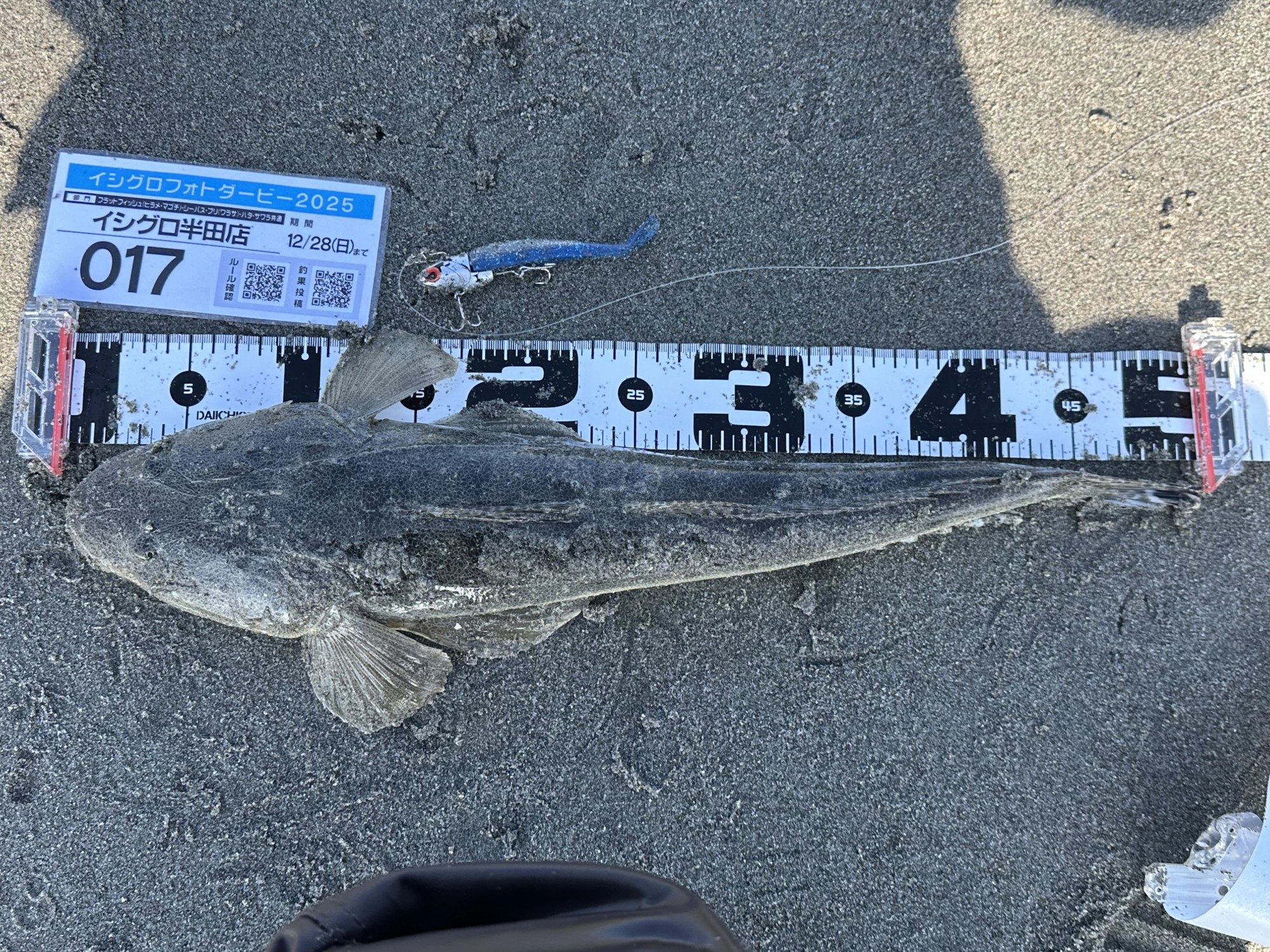 釣行日 2025/11/16 釣行時間 09:30~12:00 釣場 東海 > 静岡西部 > 遠州灘海岸 ポイント 大倉戸海岸 釣り方 サーフルアー 釣魚 マゴチ 釣果 マゴチ1匹 サイズ マゴチ50cm
