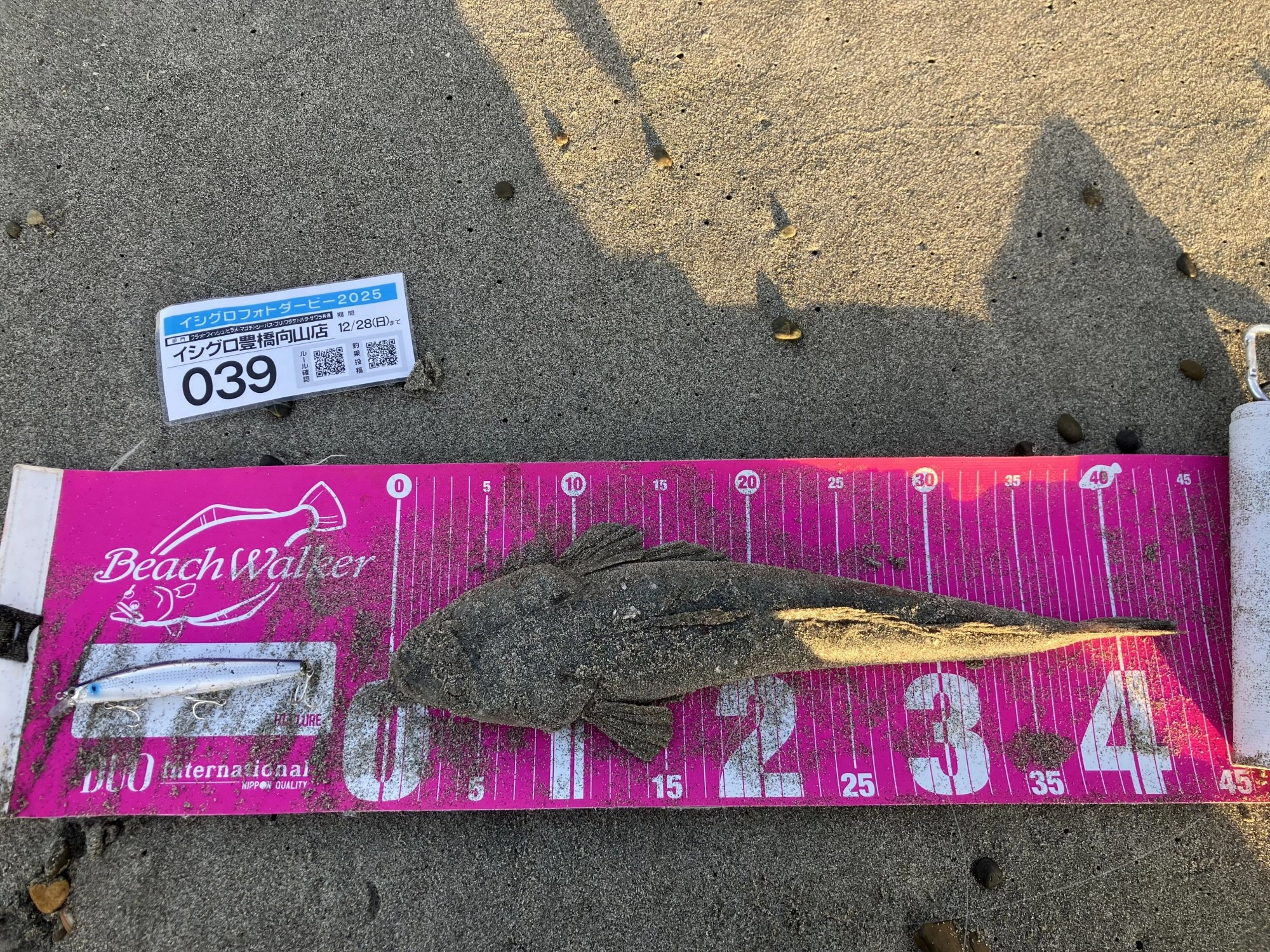 釣行日 2025/11/18 釣行時間 05:00~07:00 釣場 東海 > 愛知三河 > 豊橋・渥美半島海岸 ポイント 田原サーフ 釣り方 サーフルアー 釣魚 マゴチ 釣果 マゴチ1匹 サイズ マゴチ43㎝