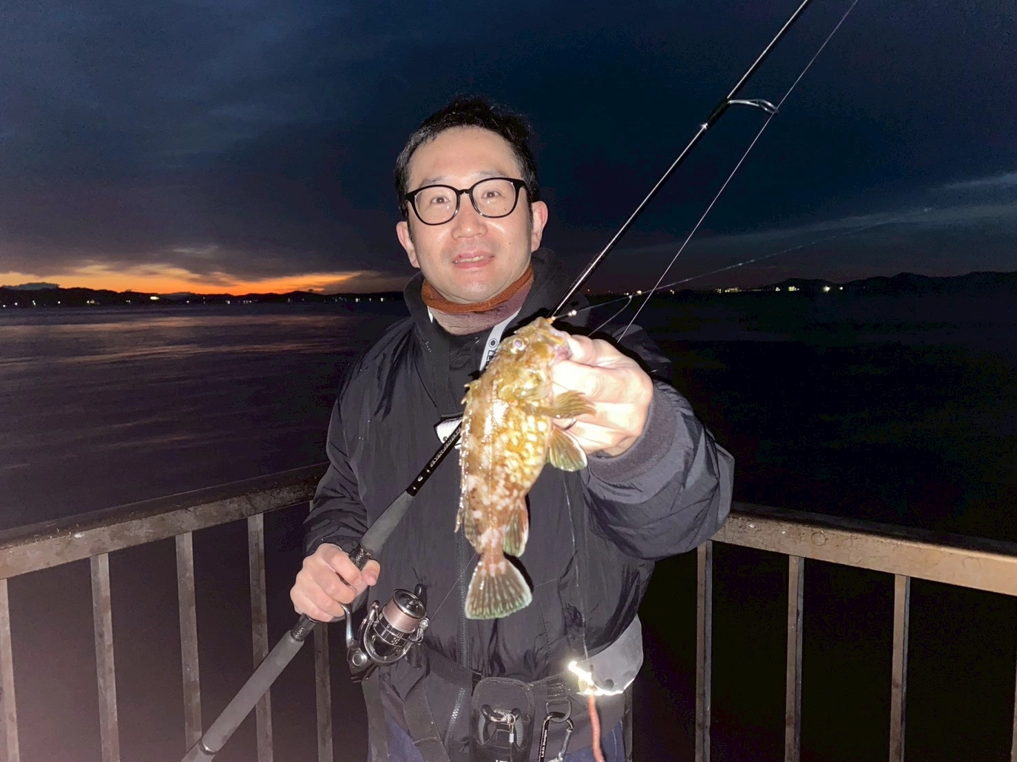 暗い時間からちょい投げで攻めていた若松店岡本は良型のカサゴをキャッチ!根の入っているポイントにキャストしてヒットしました!!