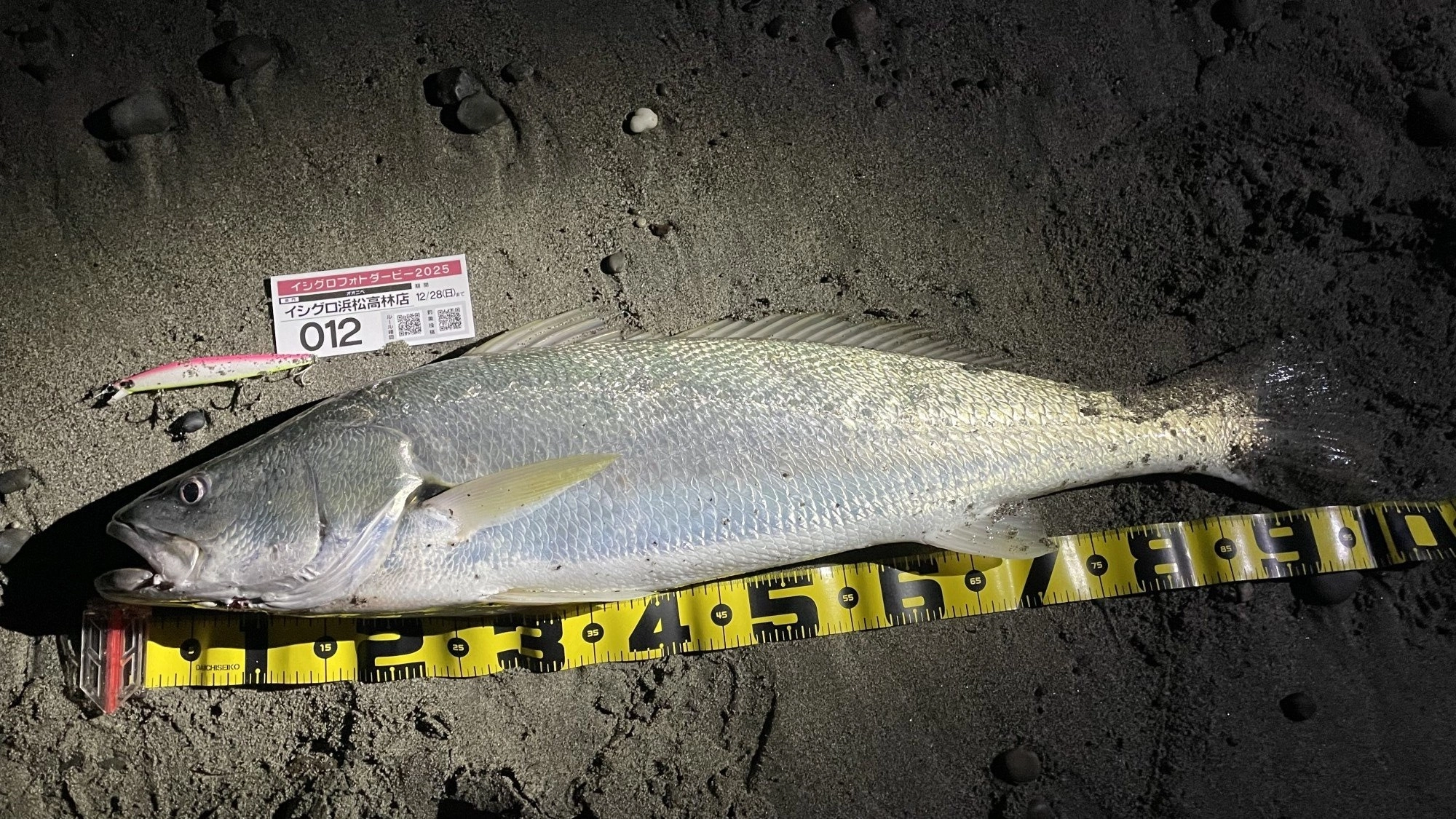 釣行日 2025/11/19 釣行時間 18:00~20:00 釣場 東海 > 静岡西部 > 遠州灘海岸 ポイント 秘密 釣り方 サーフルアー 釣魚 オオニベ 釣果 オオニベ1匹 サイズ オオニベ97cm