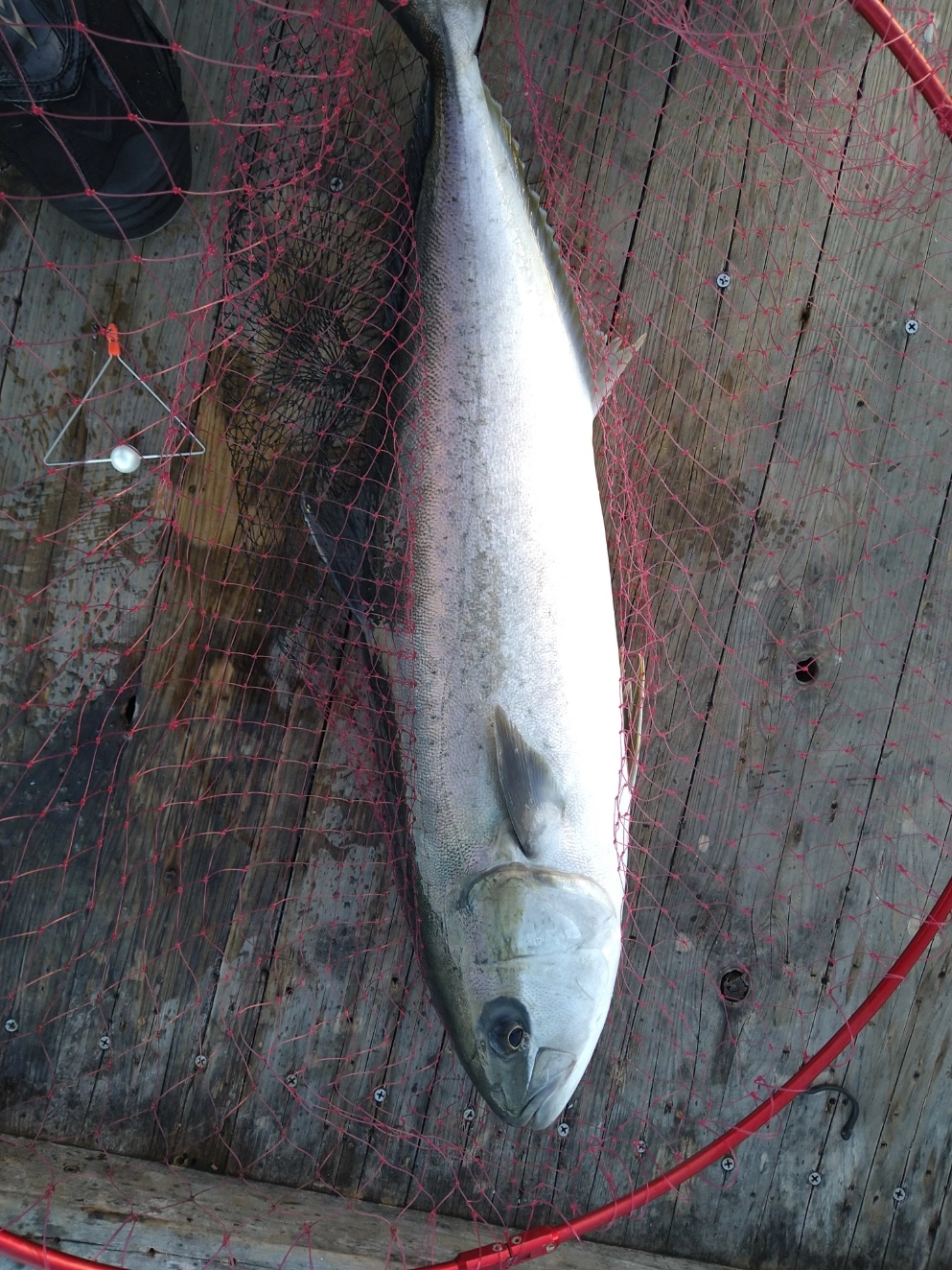 お客様もなかなか渋い状況でしたが我慢のギンペイを使った泳がせ釣りでデカカンパチを釣りあげて大満足♪