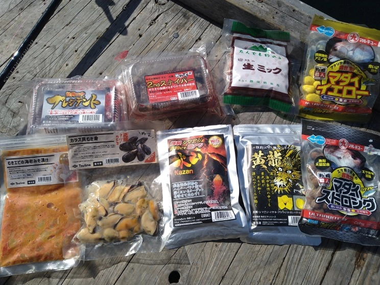 活きエサはギンペイ(ウグイ)とシラサ、活きアジと万能虫エサの「ゴールドイソメ!」