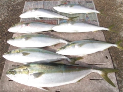 釣果 ワラサ・ブリ1匹、マダイ/イサキ6匹/1匹