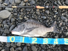 堤防で活きエサを釣って、そのエサを泳がせて釣りました。