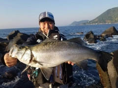 スタッフ菊間 東伊豆エリアの堤防泳がせ釣りでヒラスズキ68㎝