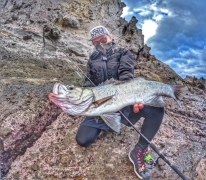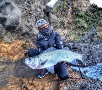 スタッフ菊間 東伊豆エリアの堤防泳がせ釣りでヒラスズキ68㎝