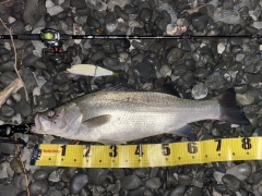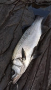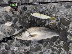 釣果 ヒラスズキ1匹、ワカシ1匹