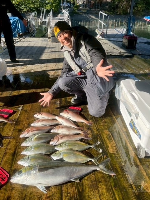 釣果 カンパチ1匹、シマアジ5匹、マダイ16匹、ワラサ・ブリ1匹