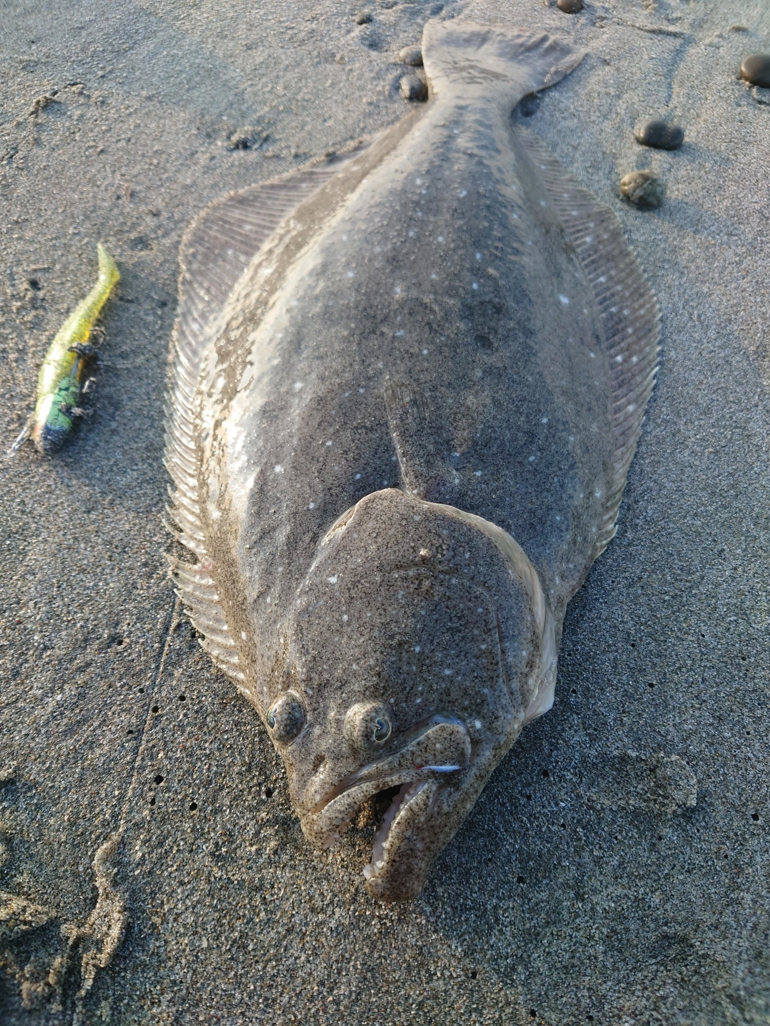 釣行日 2025/11/22 釣行時間 04:40~08:15 釣場 東海 > 静岡西部 > 遠州灘海岸 ポイント 掛川サーフ 釣り方 サーフルアー 釣魚 ヒラメ 釣果 ヒラメ1匹 サイズ ヒラメ41.5cm