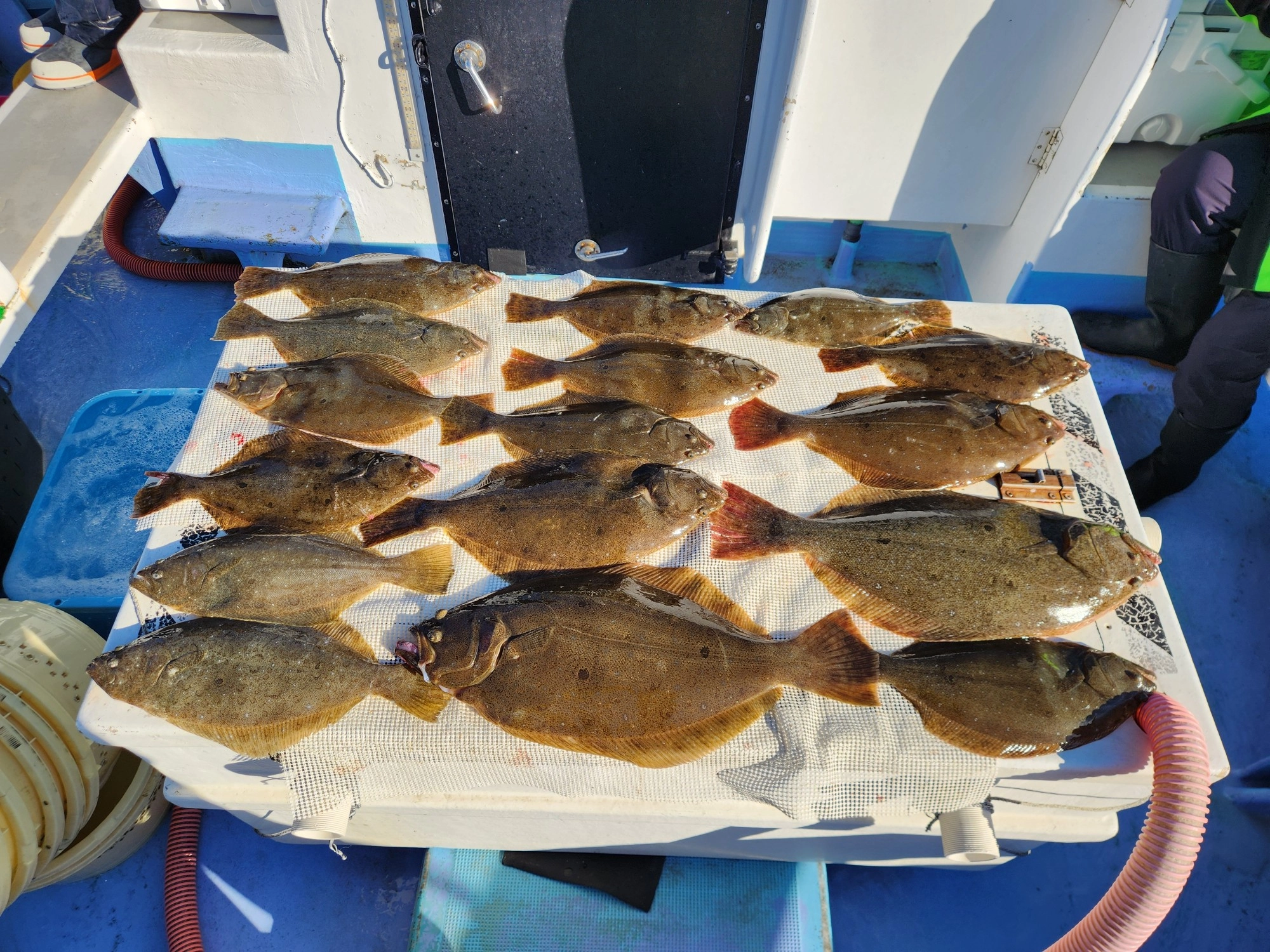 釣行日 2025/11/22 釣行時間 06:00~12:45 釣場 東海 > 愛知三河 > 沖・オフショア ポイント 伊良湖沖 釣り方 船釣り 釣魚 ヒラメ 釣果 ヒラメ竿頭4枚 サイズ ヒラメ最大55㎝