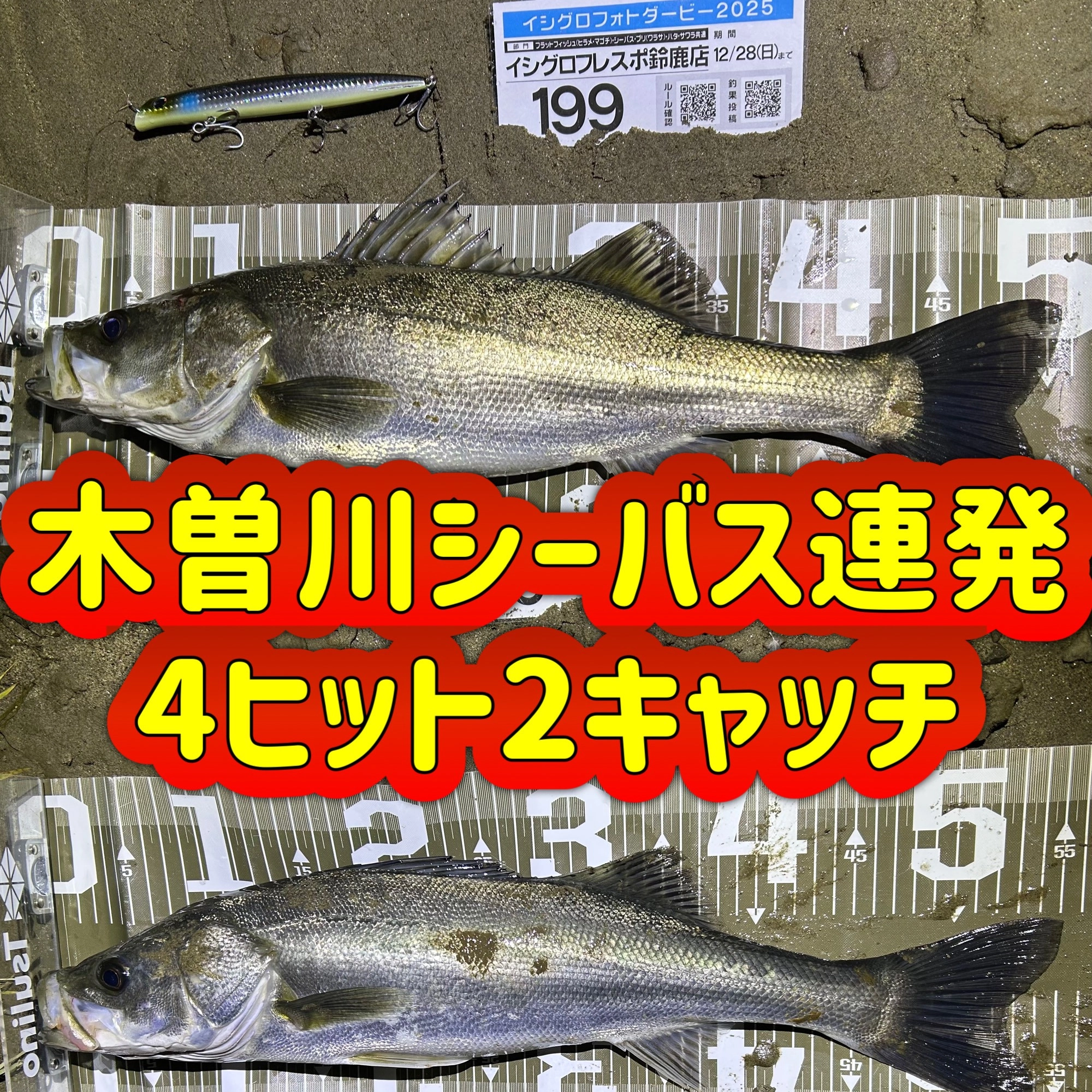 ヒットルアーはアイマのコモモカウンター155とドミンゴ80。両方ともタダ巻きでヒット!
