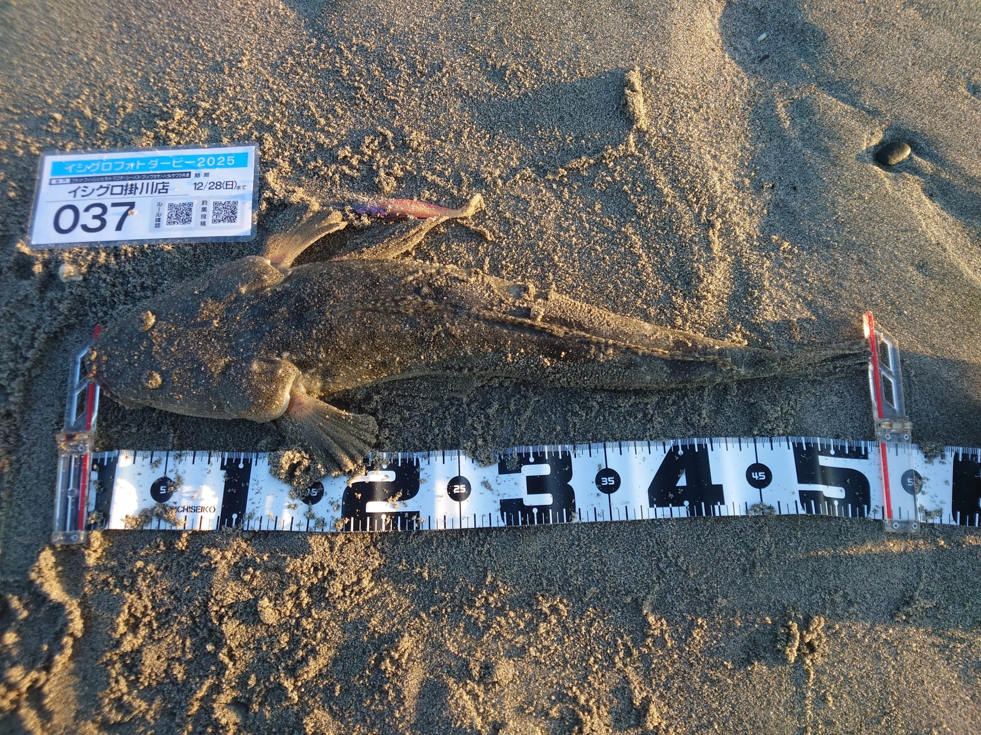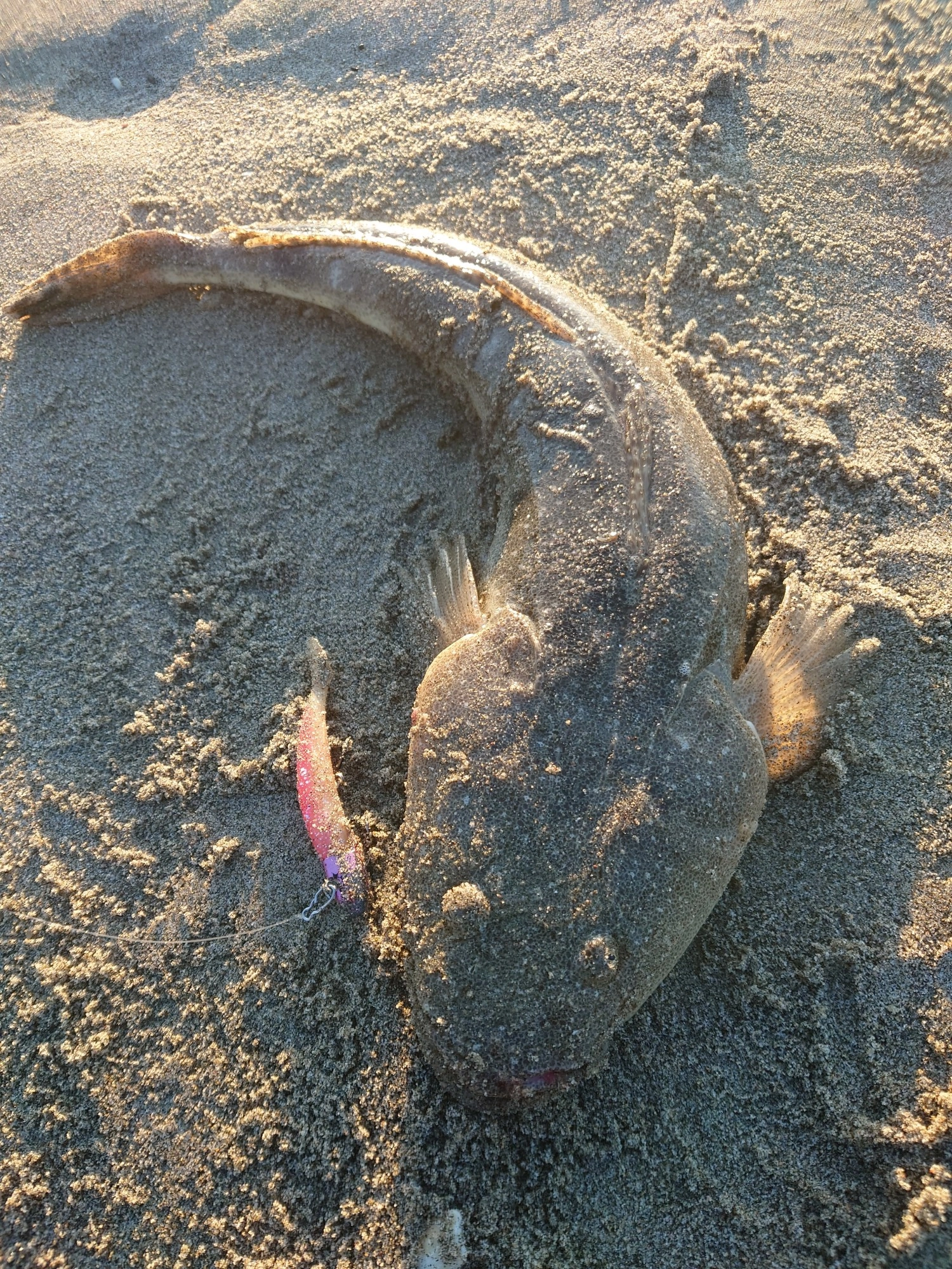 釣行日 2025/11/23 釣行時間 04:30~08:10 釣場 東海 > 静岡西部 > 遠州灘海岸 ポイント 浜岡サーフ 釣り方 サーフルアー 釣魚 マゴチ 釣果 マゴチ1匹 サイズ マゴチ53cm