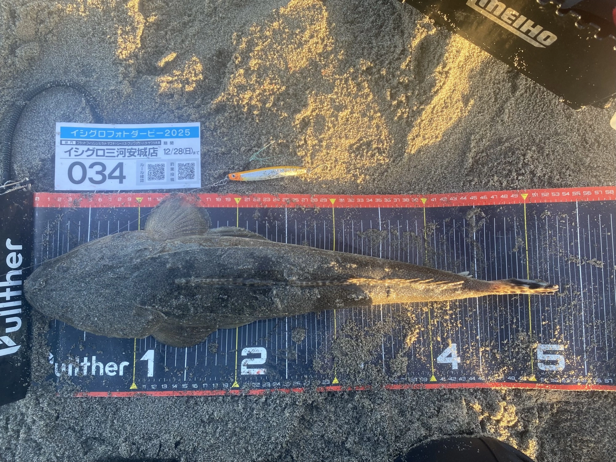 釣行日 2025/11/23 釣行時間 01:00~08:00 釣場 東海 > 静岡西部 > 遠州灘海岸 ポイント 天竜川河口サーフ 釣り方 サーフルアー 釣魚 マゴチ 釣果 マゴチ1匹 サイズ マゴチ52.5cm