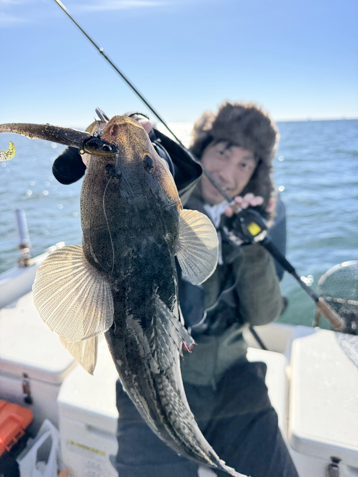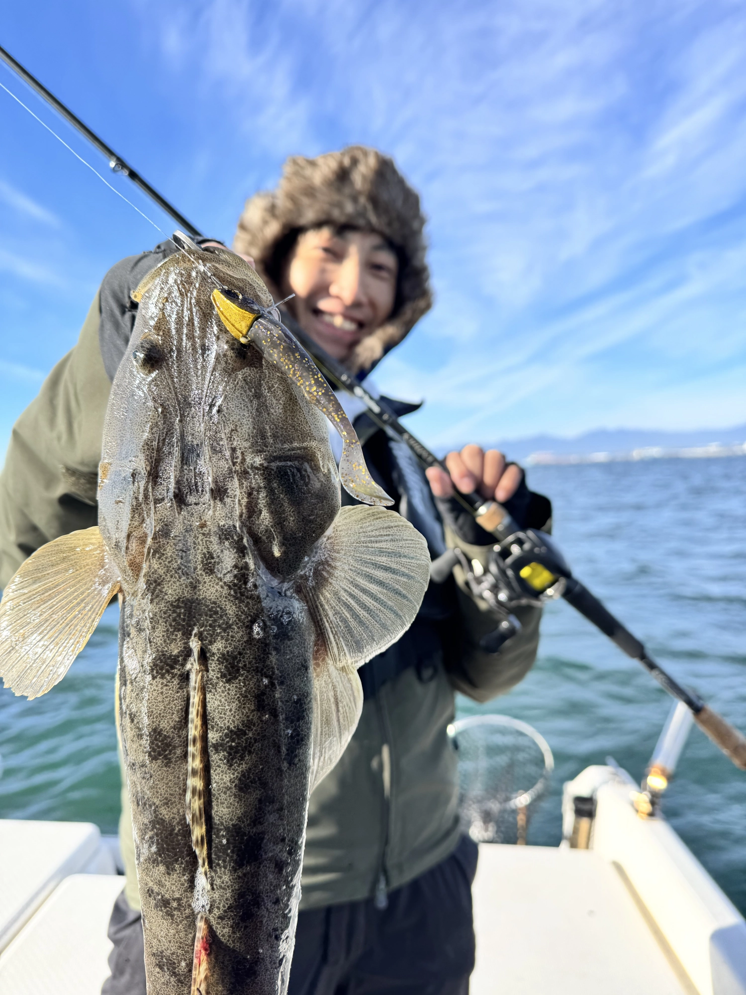船で一番でっかいタモで掬いました!