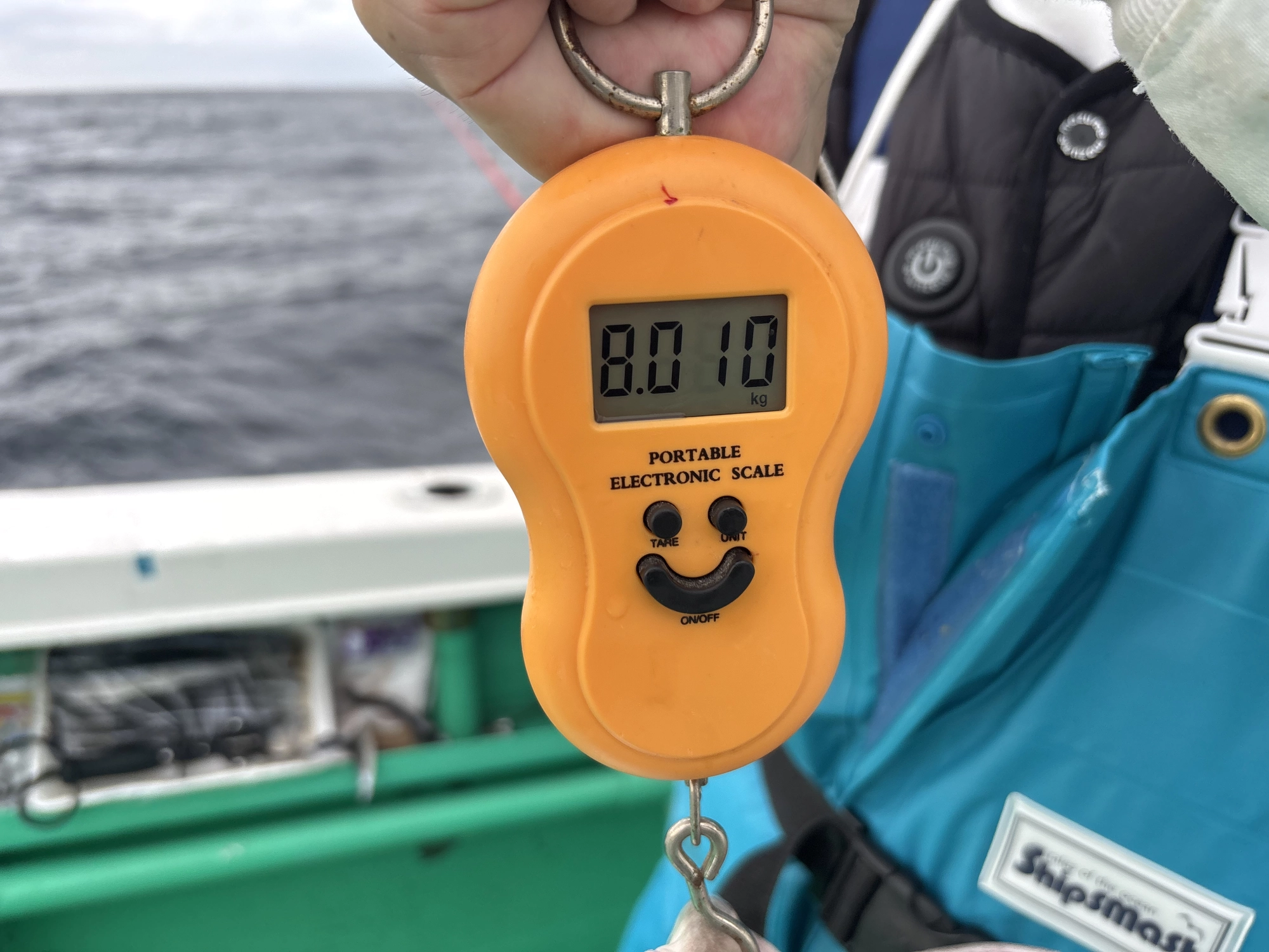 タックルは2m前後の250号オモリ負荷グラス船竿+電動リールPE4号500mにリーダー20号5mを使用しました。