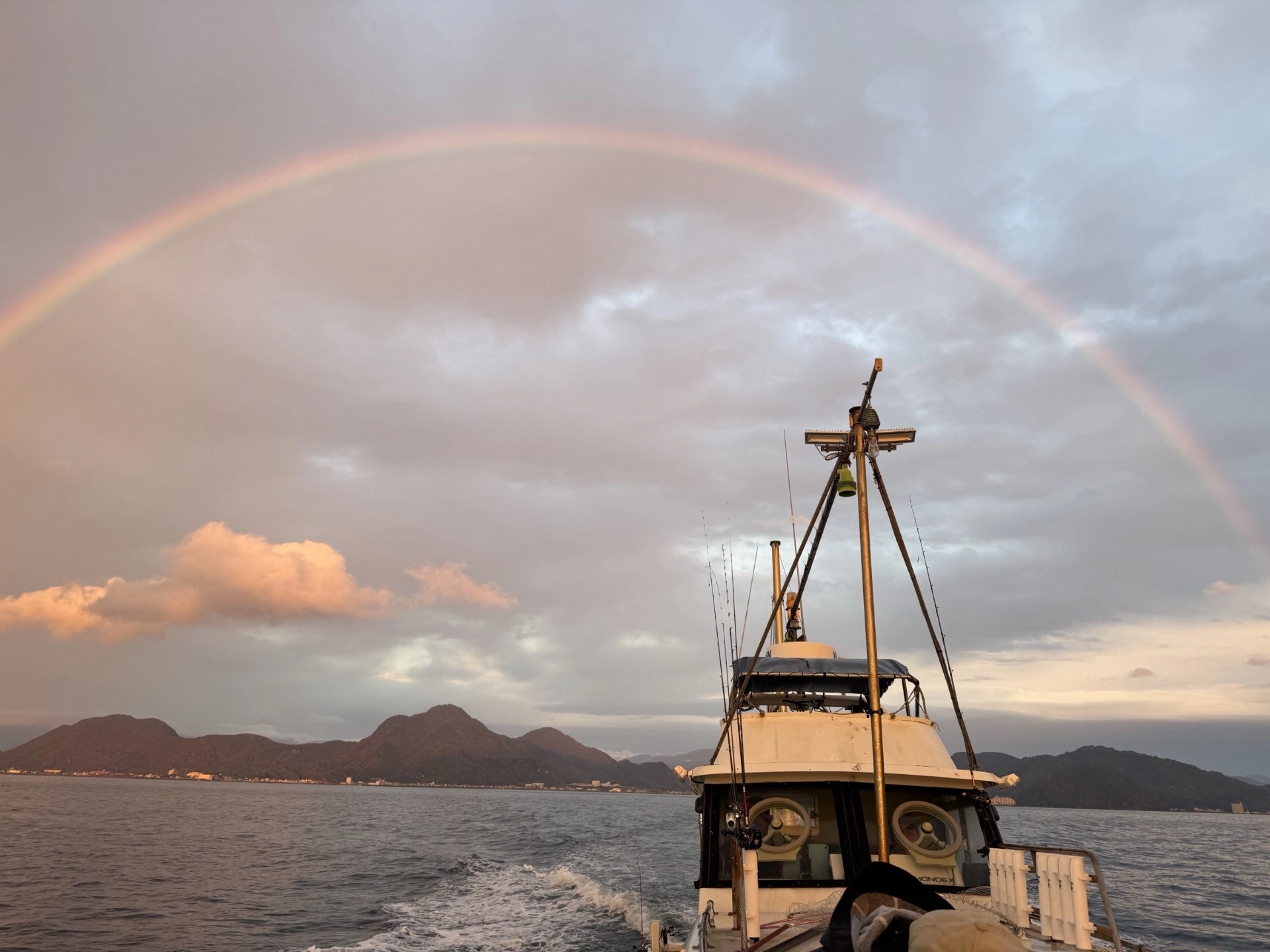 この日は小雨が降る中、沖は晴れで綺麗な夕日と虹が出ていました!