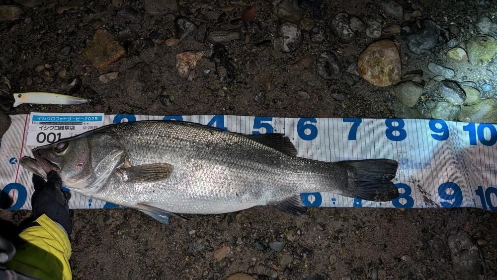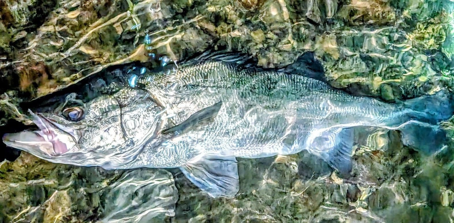 河川での釣果。人生初ランカー!! 明暗部にダウンクロスで入れ、デッドスローで引いてくると水面爆発! えげつない引きをパワーファイトで寄せてくると今までに見た事の無いサイズの魚影が見えてテンション爆上がりでした!
