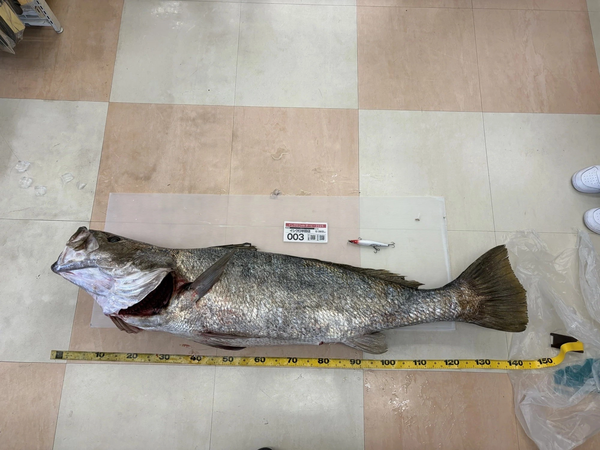 釣行日 2025/11/29 釣行時間 06:30~07:00 釣場 東海 > 静岡西部 > 遠州灘海岸 ポイント 釣り方 シーバスルアー 釣魚 オオニベ 釣果 オオニベ1匹 サイズ オオニベ143cm