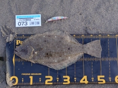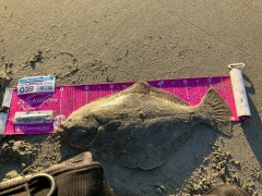 釣行日 2025/11/29 釣行時間 05:30~07:30 釣場 東海 > 静岡西部 > 遠州灘海岸 ポイント 舞坂サーフ 釣り方 サーフルアー 釣魚 ヒラメ 釣果 ヒラメ1匹 サイズ ヒラメ46cm
