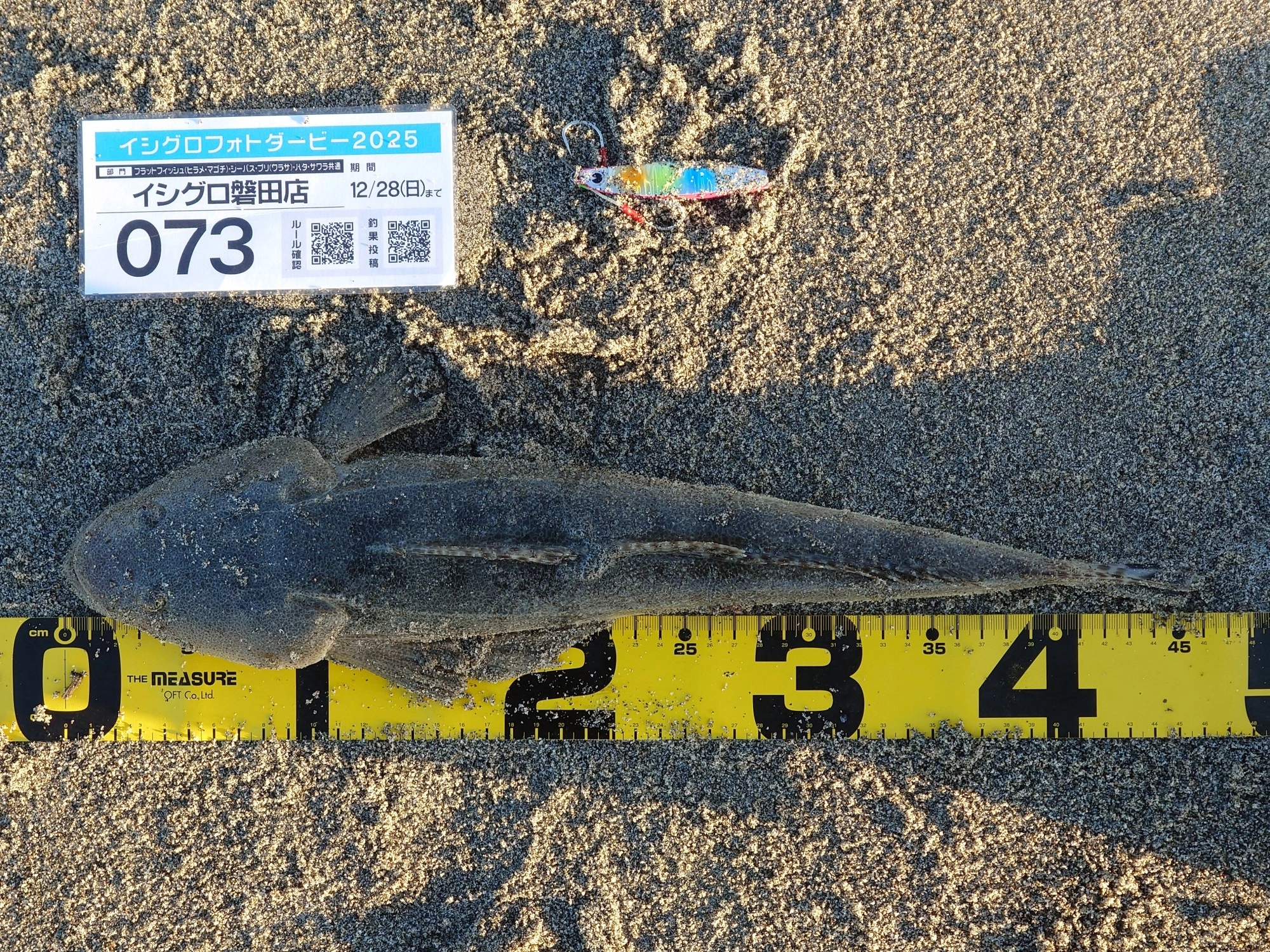 釣行日 2025/11/30 釣行時間 04:30~07:50 釣場 東海 > 静岡西部 > 遠州灘海岸 ポイント 袋井海岸 釣り方 サーフルアー 釣魚 マゴチ 釣果 マゴチ1匹 サイズ マゴチ45cm