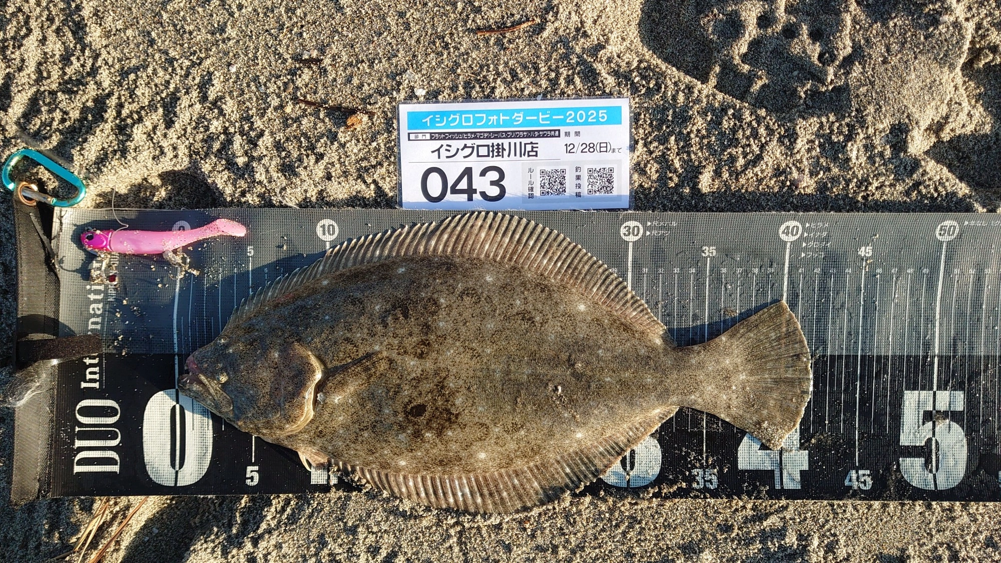 釣行日 2025/11/30 釣行時間 05:00~08:00 釣場 東海 > 静岡西部 > 遠州灘海岸 ポイント 菊川河口付近 釣り方 サーフルアー 釣魚 ヒラメ 釣果 ヒラメ1匹 サイズ ヒラメ42cm