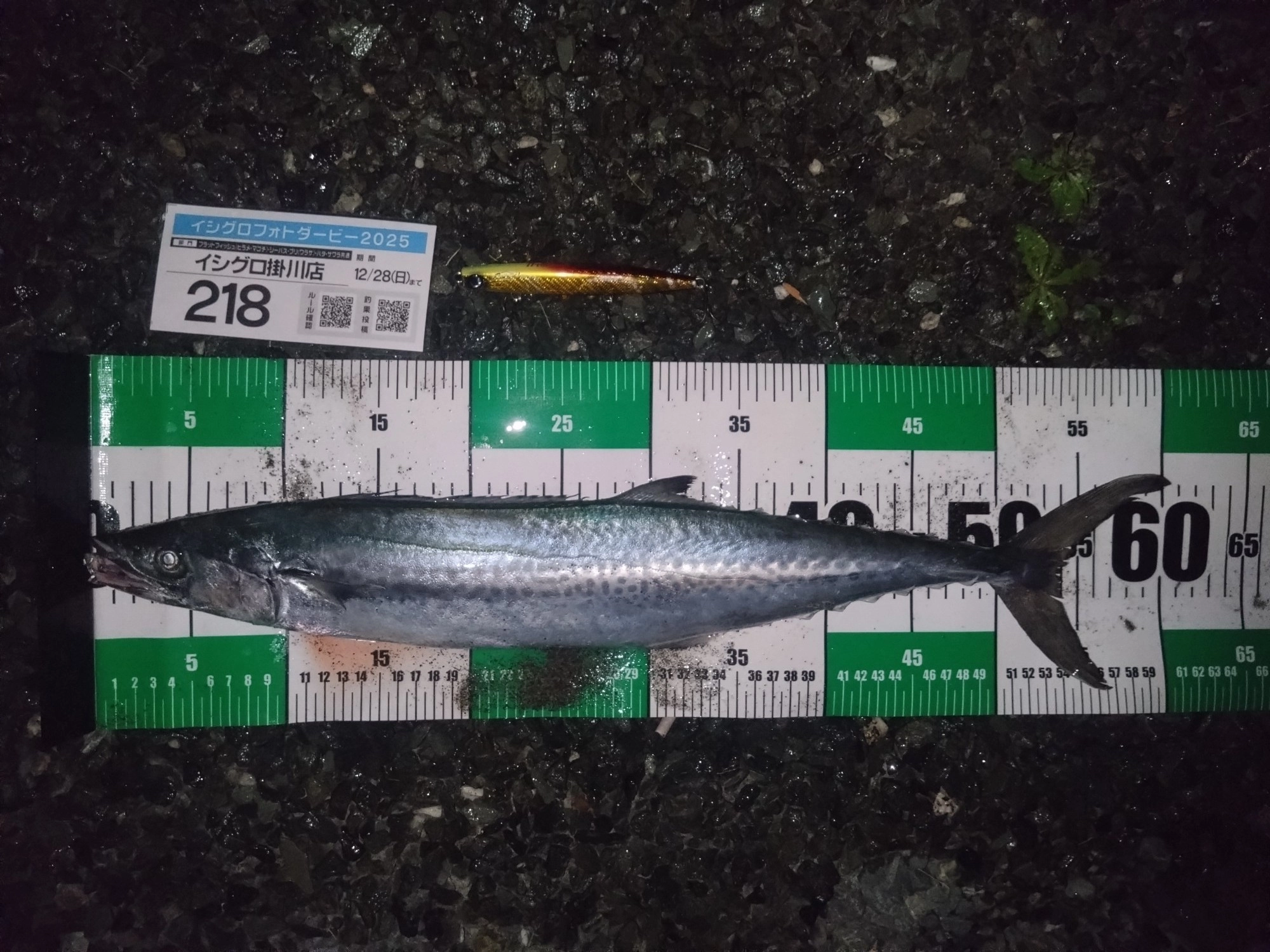 釣行日 2025/11/30 釣行時間 05:00~08:00 釣場 東海 > 静岡西部 > 遠州灘海岸 ポイント 天竜川河口エリア 釣り方 サーフルアー 釣魚 サワラ(サゴシ) 釣果 サワラ(サゴシ)1匹 サイズ サワラ(サゴシ)60cm