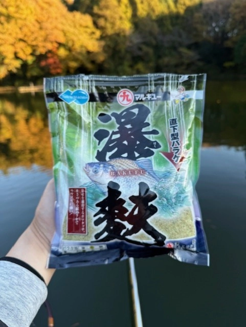 今回も瀑麩を使用。クワセ針にはオーナーばりの「へら玉鈎」の3号、エサにはさなぎ玉を使いました。