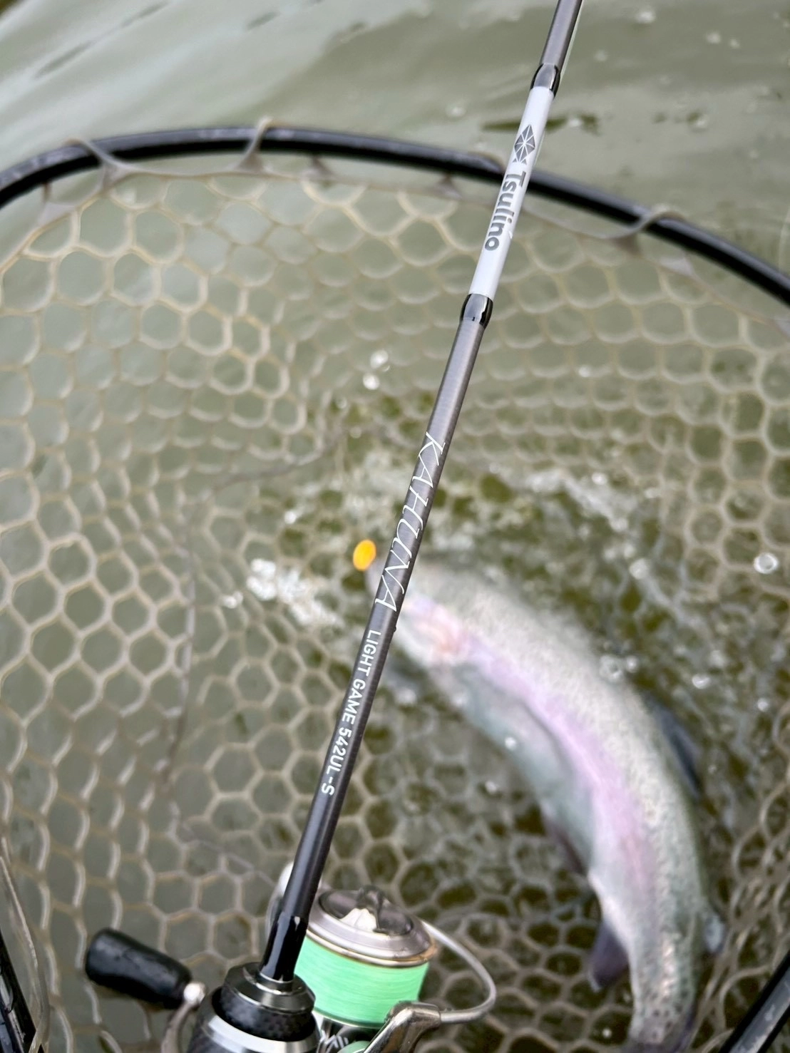 と、弊社オリジナルロッド「カフナ ライトゲーム 542UL-S」とPEラインの組み合わせ。
