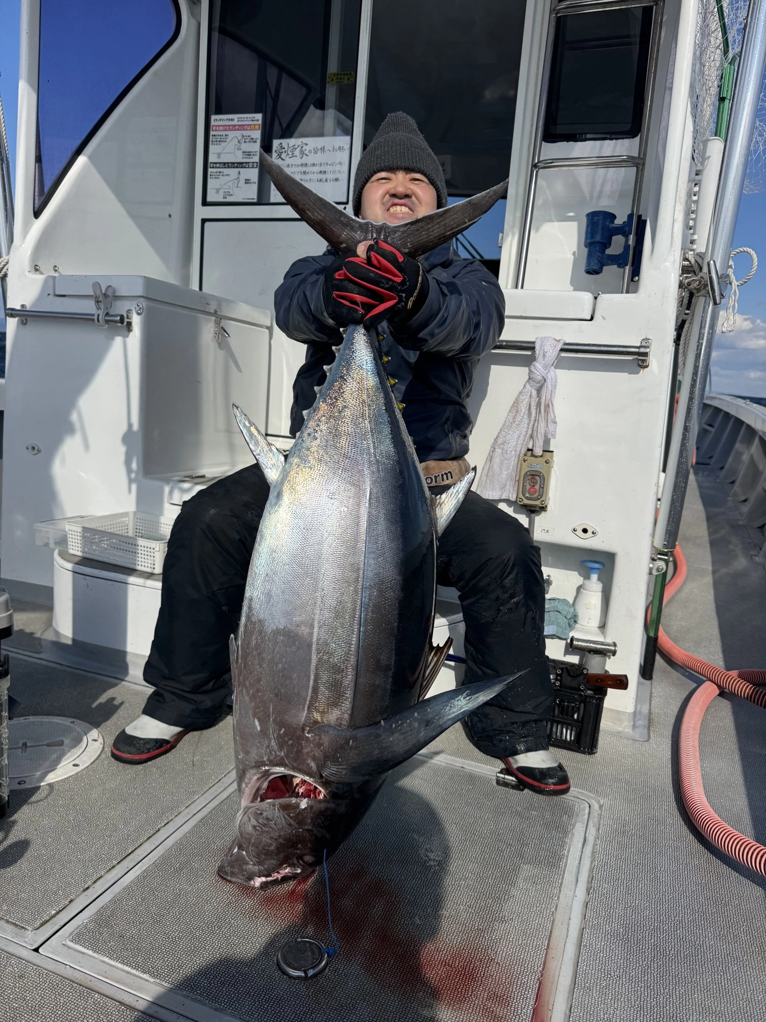 そして石川にもついにヒット!しかも初マグロキャッチが20kgのタネトン!