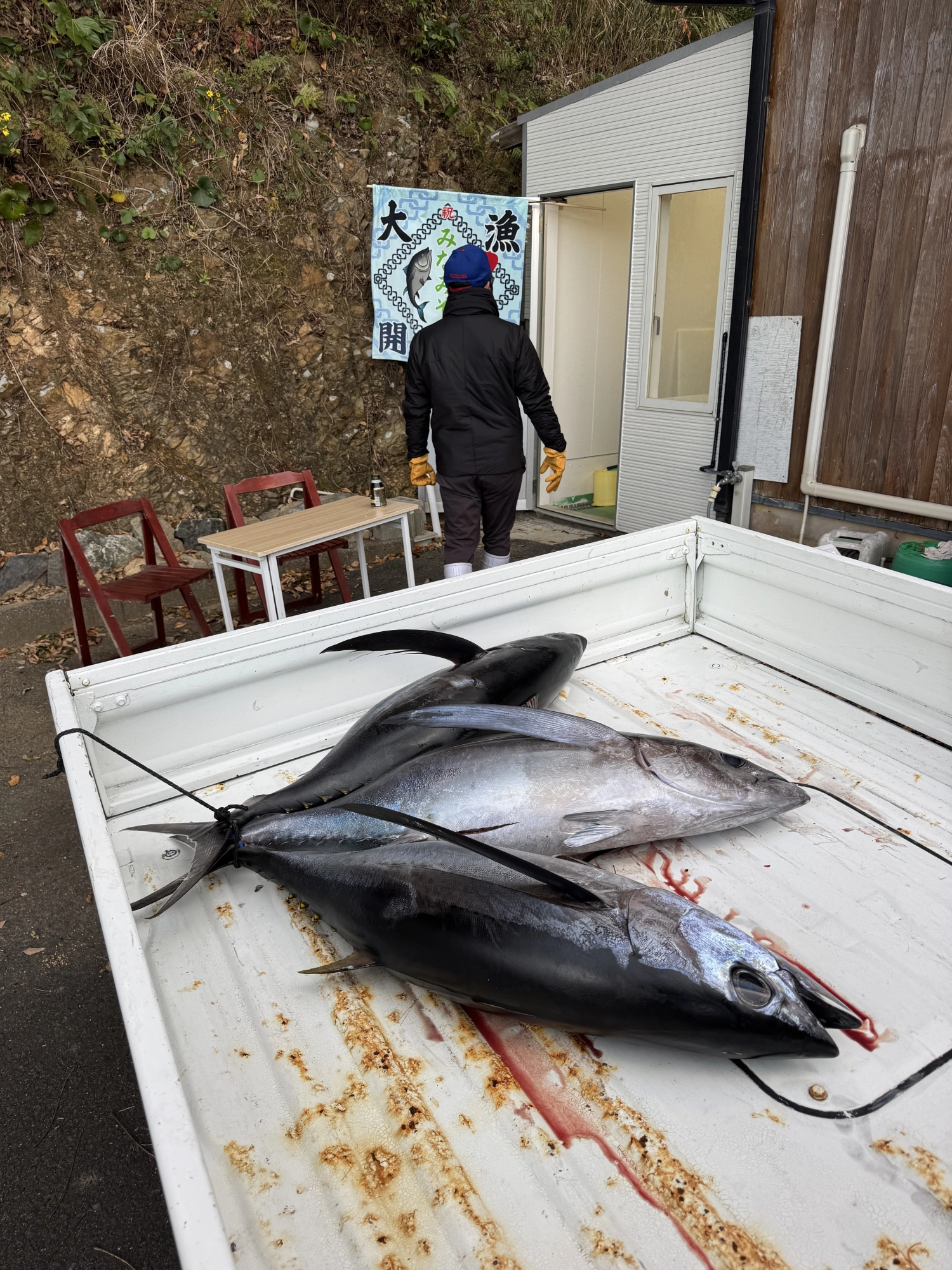 最後に船長の軽トラで釣れたマグロを運んでいただき