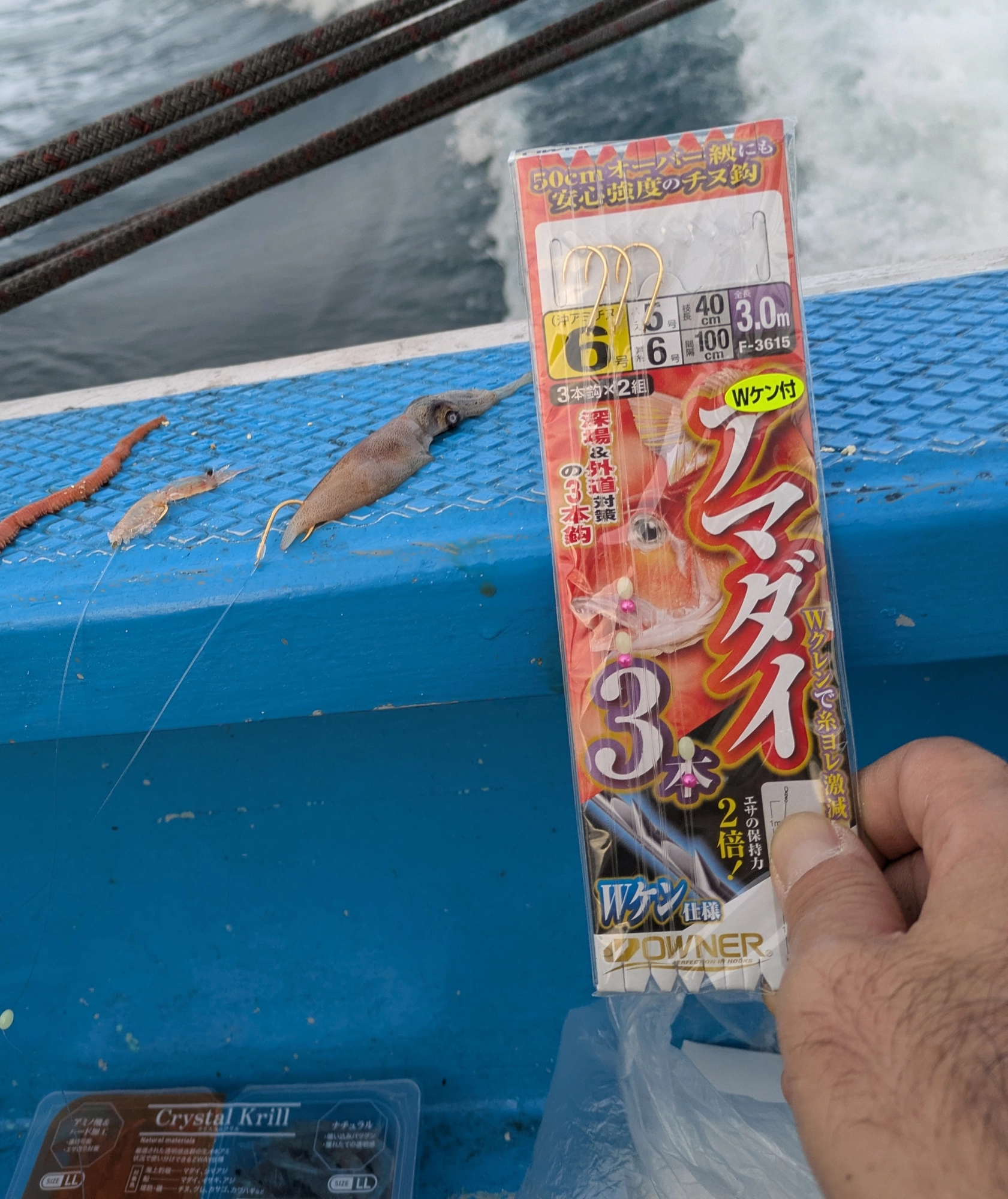 まずは白アマダイのポイント天竜沖まで約50分という事でその間に釣りがすぐできるように準備をします。ここ遠州灘は50㎝超える大物が釣れるという事で仕掛はハリスの太いものが必須今回はオーナーのアマダイ3本ハリスの5号ハリスを持っていきました。