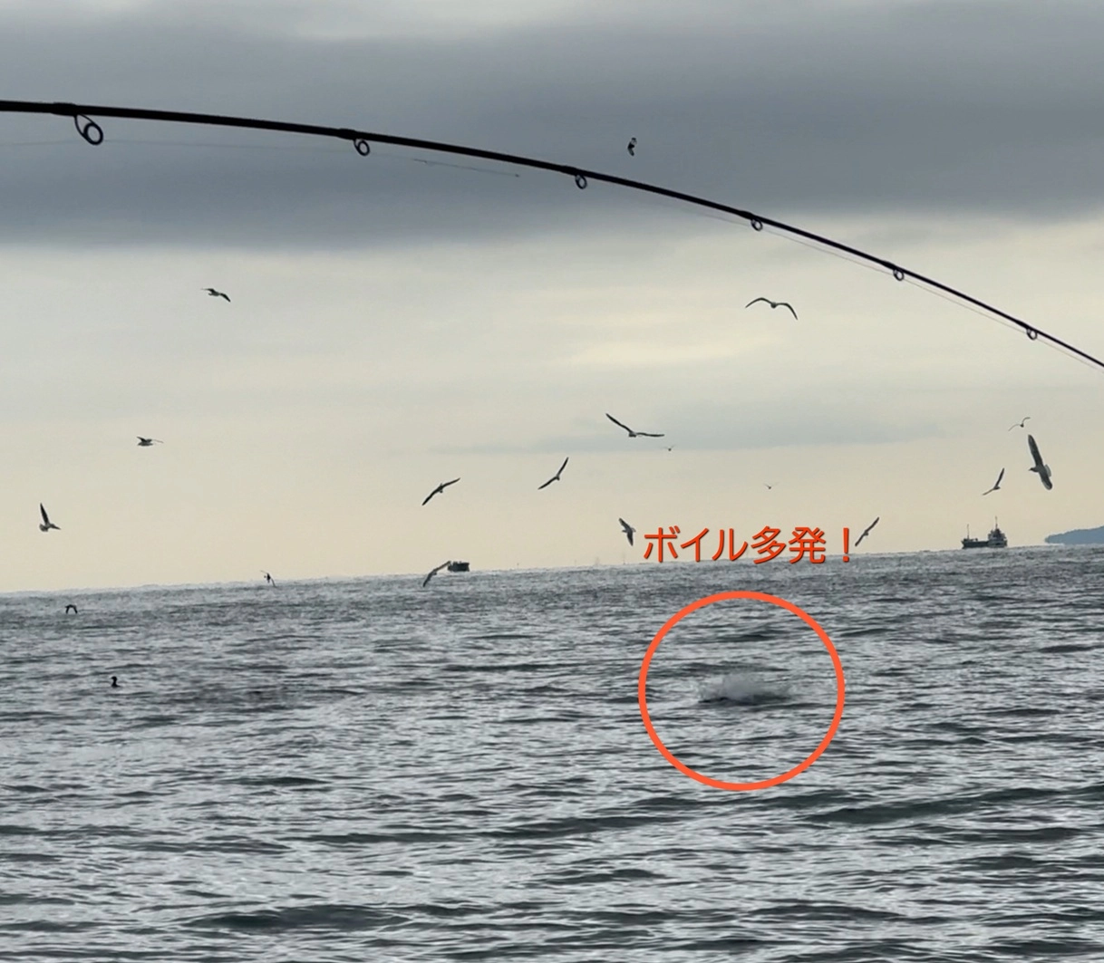鳥山消さないように船長が魚の方向をみてゆっくり回り込む!
