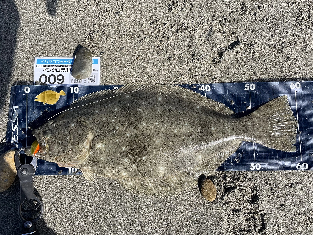 ヒラメはアタリがあっても早合わせは厳禁!!細かなアタリは無視して、竿がグイーッと引き込まれるくらいまでグッと我慢してください(笑)エサを胃袋まで飲み込ませるイメージです。