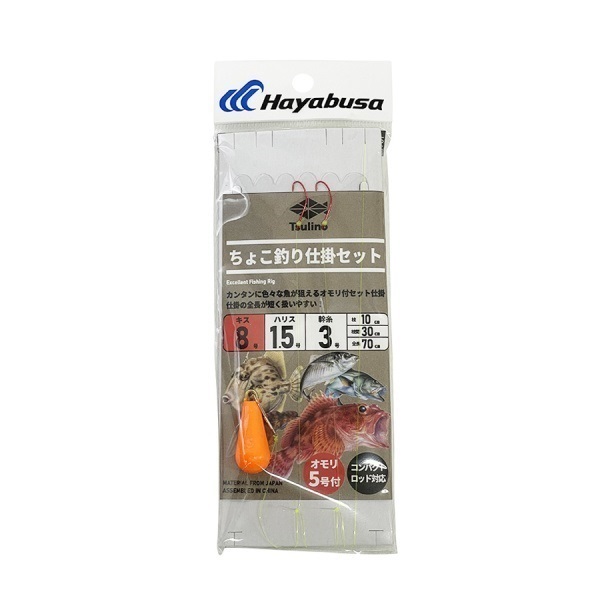 ハゼ釣り用手竿と仕掛のセットもあります。予備の糸付き針(別売)も1パックは用意しましょう。