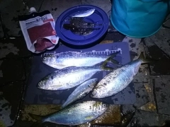 エサは活きエサを使います。イソメはかたい頭を切り取り、3cm位に切ってから針にまっすぐ通し刺しにします。石粉(活きエサ用のすべり止め粉)を使うと滑りにくくなり、針付けしやすいです。木製エサ箱に入れておくと元気長持ちしますよ。