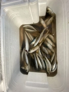 1 服に刺さった釣り針に付いている釣り糸を全て切ります。針元の糸(結び目)もきれいに切ります。