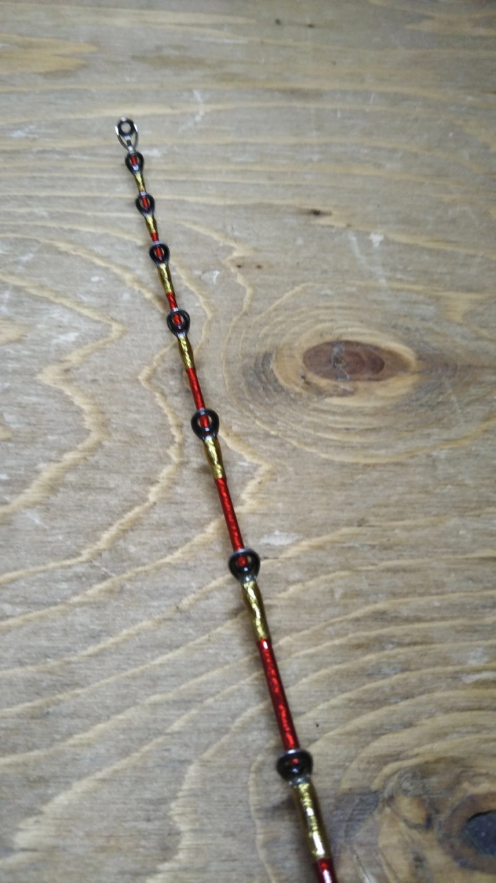 目立つ色にしたかったので赤のスレッドを巻いてコーティング。