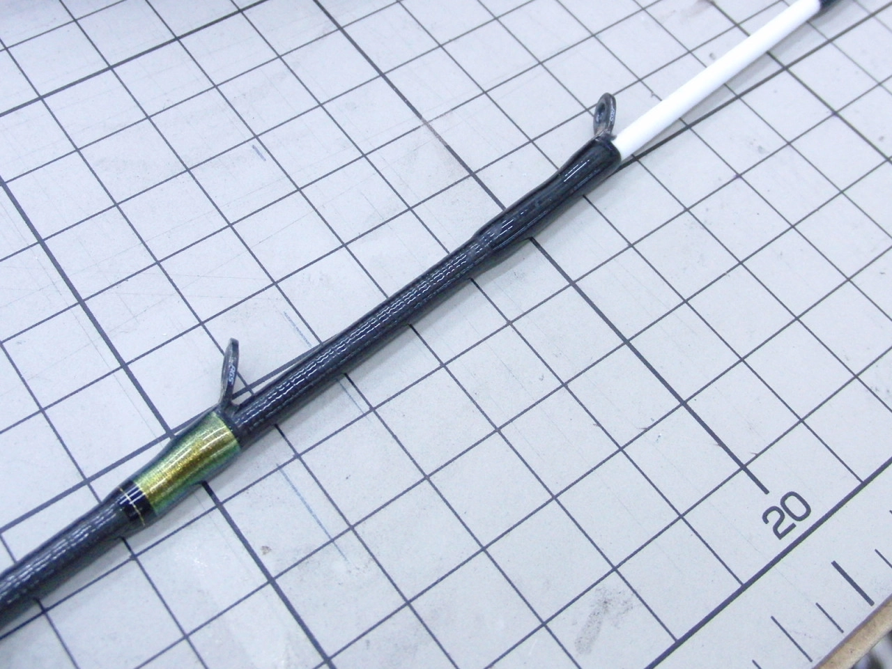 ①TOPガイド曲がり直しと、、、 ②メタルトップ下で折れているので再度差し込み接着。