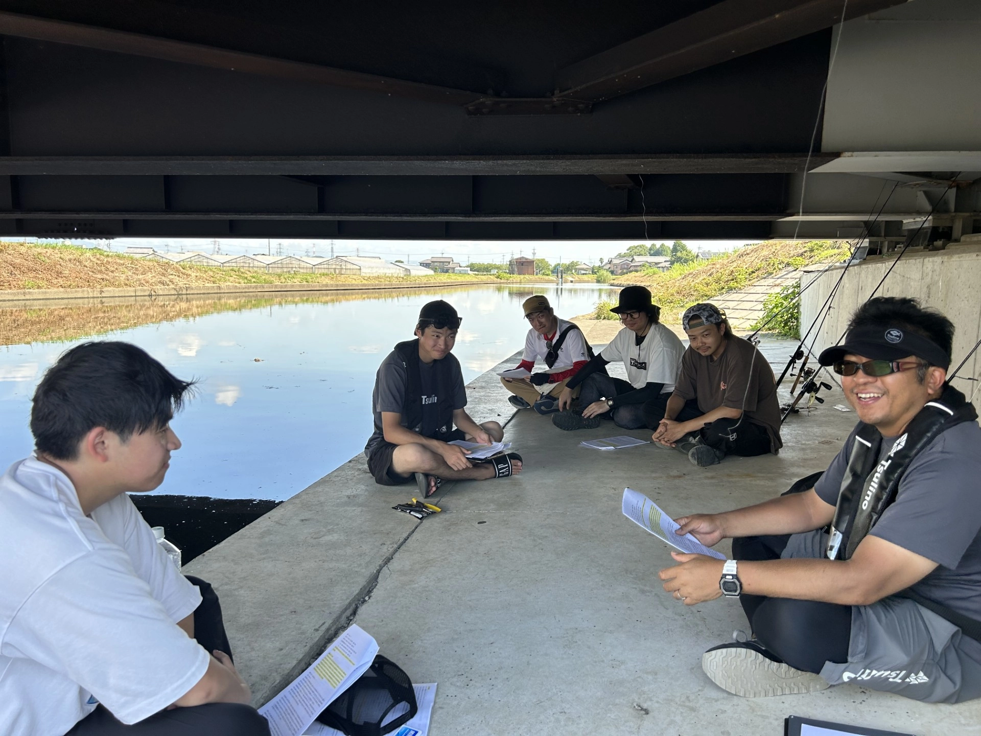 実釣の後はバスフィシングほぼ初挑戦の1年生たちには基本的なリグの説明をしたり