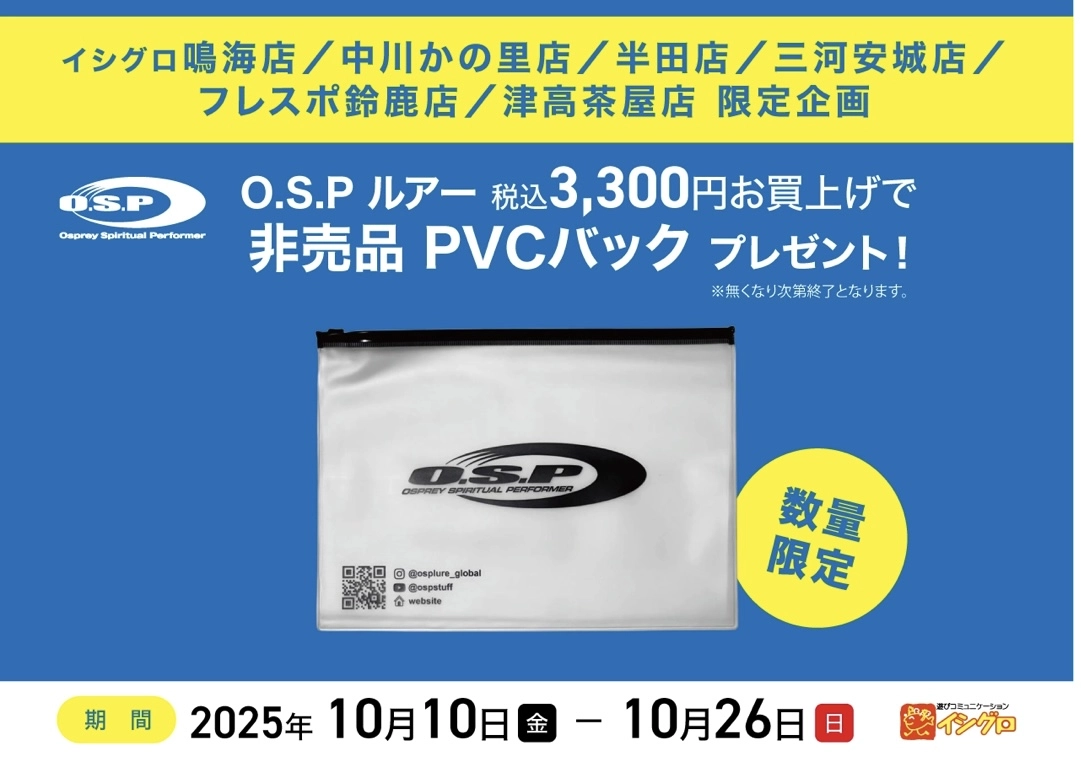 イベント期間中にOSP製品を税込み ¥3,300 以上お買い上げで 非売品PVCバッグ をプレゼント!