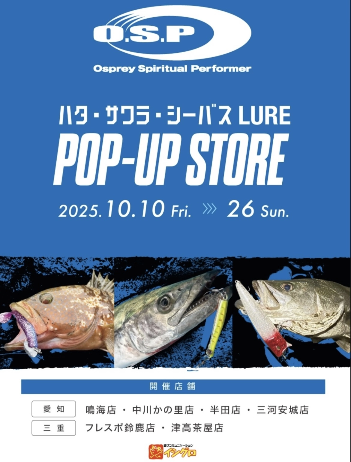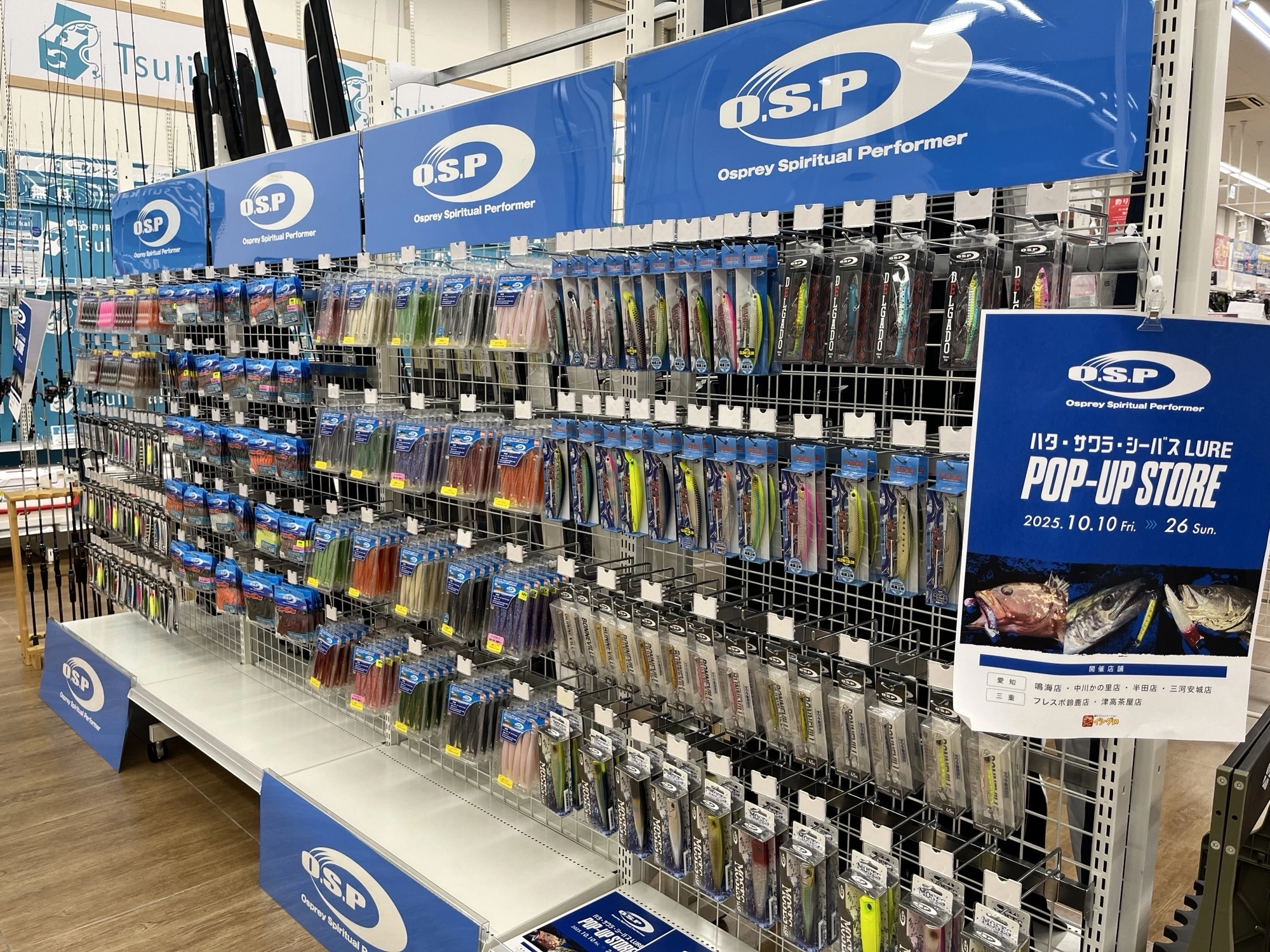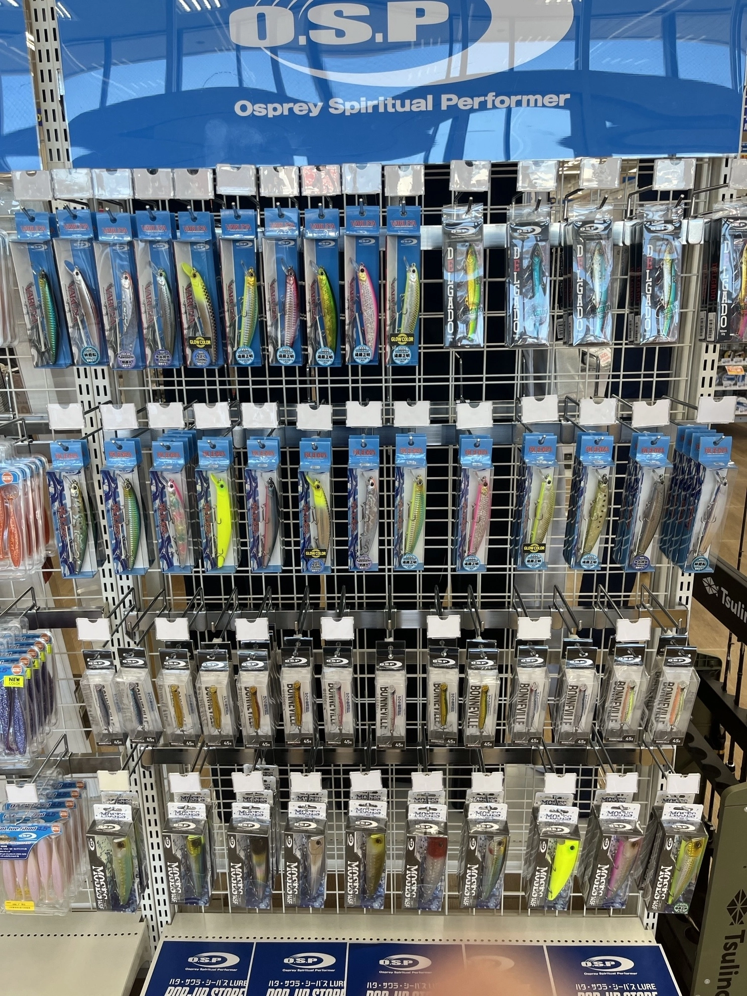 イベント期間中は当店入ってすぐのイベントブースにて大人気のOSPソルトルアーの販売を行っております!