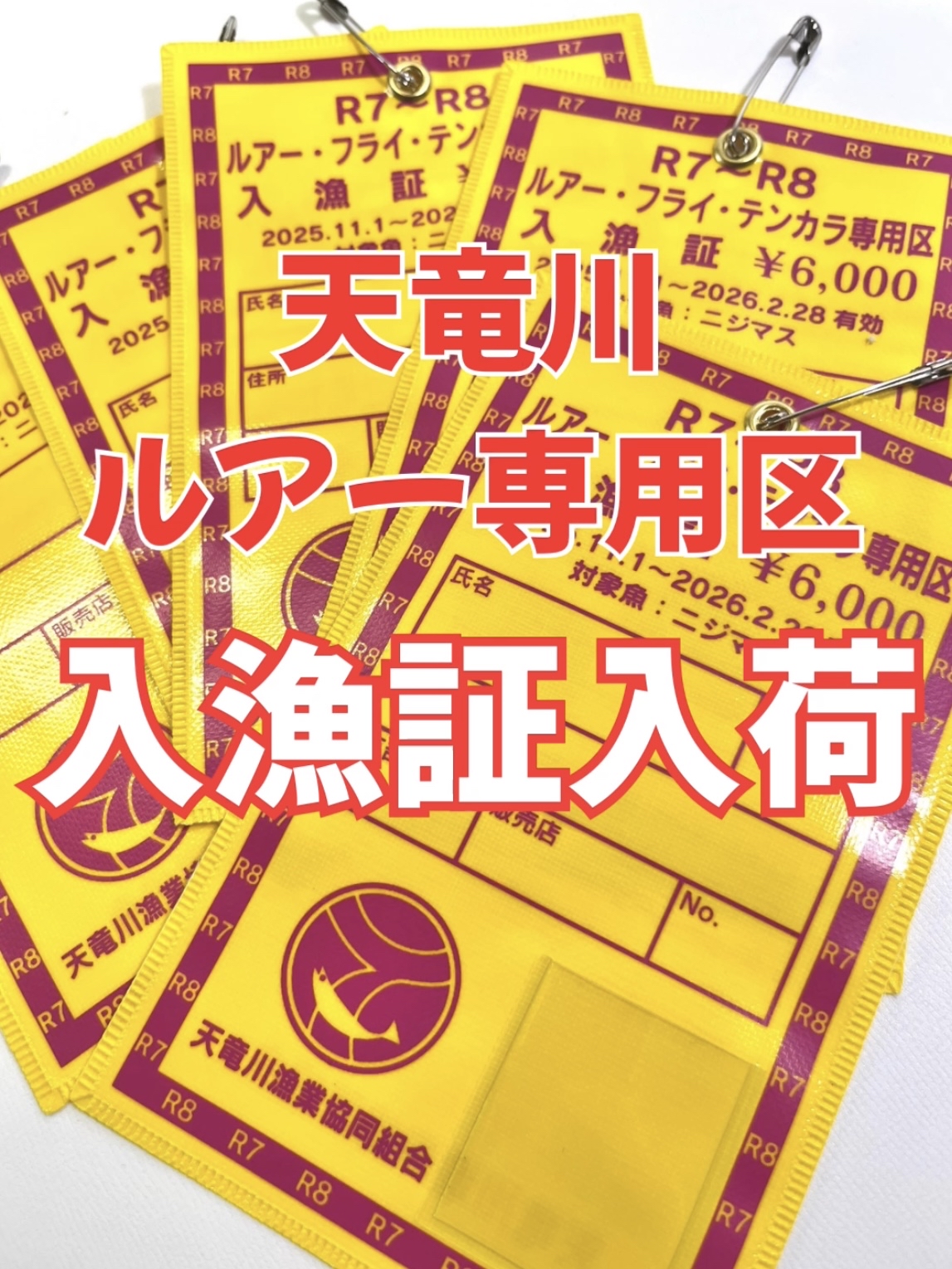 R7~R8 天竜川ルアー・フライ・テンカラ専用区の年券・日券 が入荷しました(^^)/