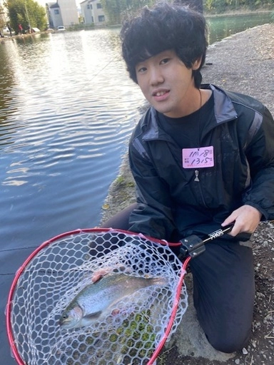 開始10分ほどで渡邊に20センチほどのニジマスがヒット!