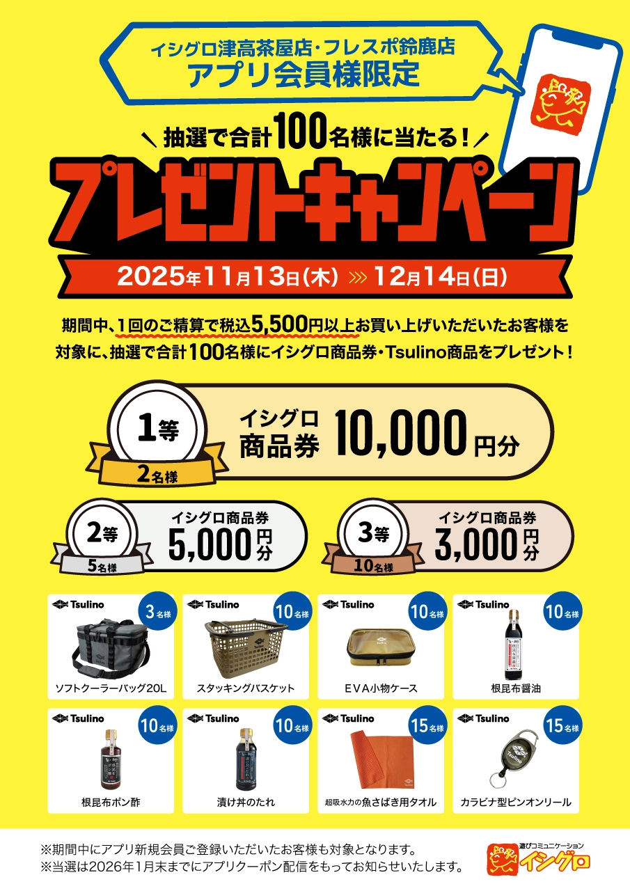 最高賞がイシグロ商品券1万円!!その他ツリノの三重県で特に売れてるあの商品達が当たっちゃうかも?!?!