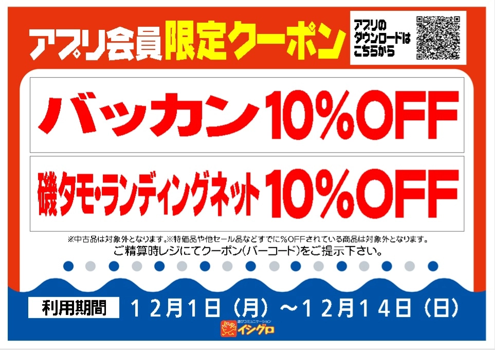 12/1よりイシグロアプリよりとーてもお得なクーポンが配信中!!