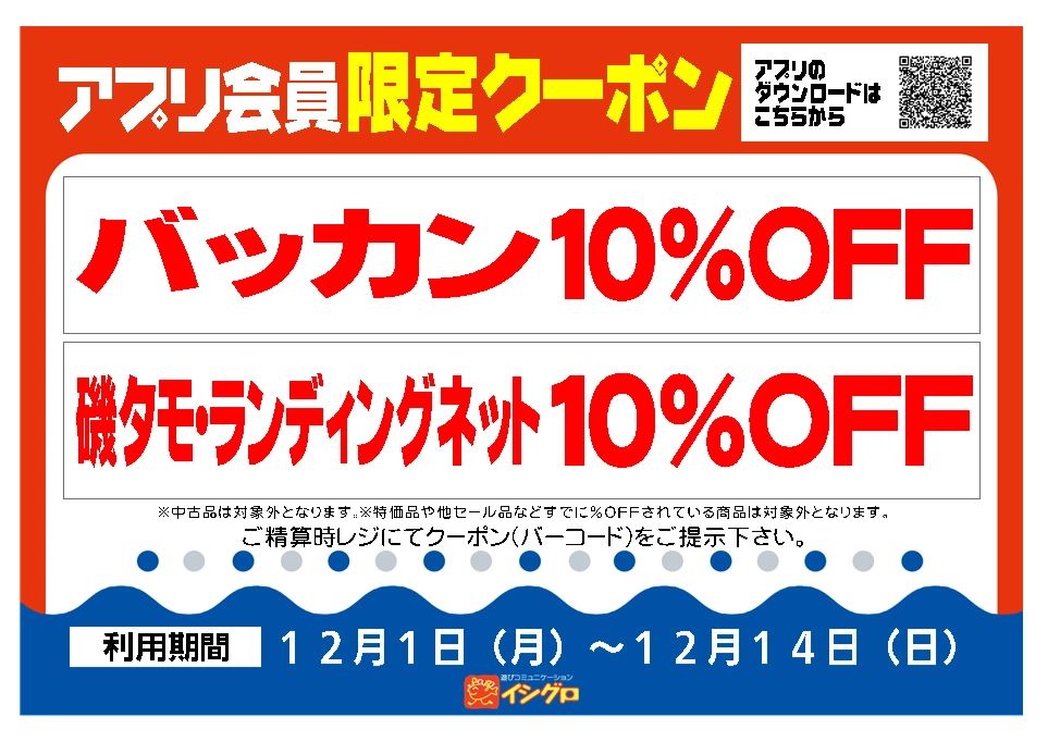 バッカン・磯タモ、ランディングネットが10%OFF