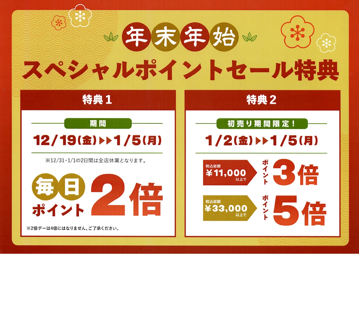 12/19~1/5の間は毎日がポイントが2倍デイ!!