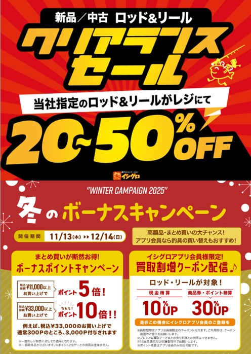 イシグロ西春店では、釣り好きの皆さまに嬉しい 冬の特別企画 を実施中です!