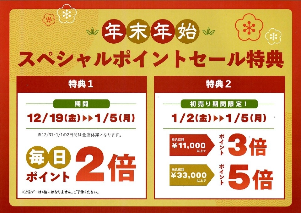 年始のお買い物ならポイントも超超アップとなりますので是非ご来店下さい!!